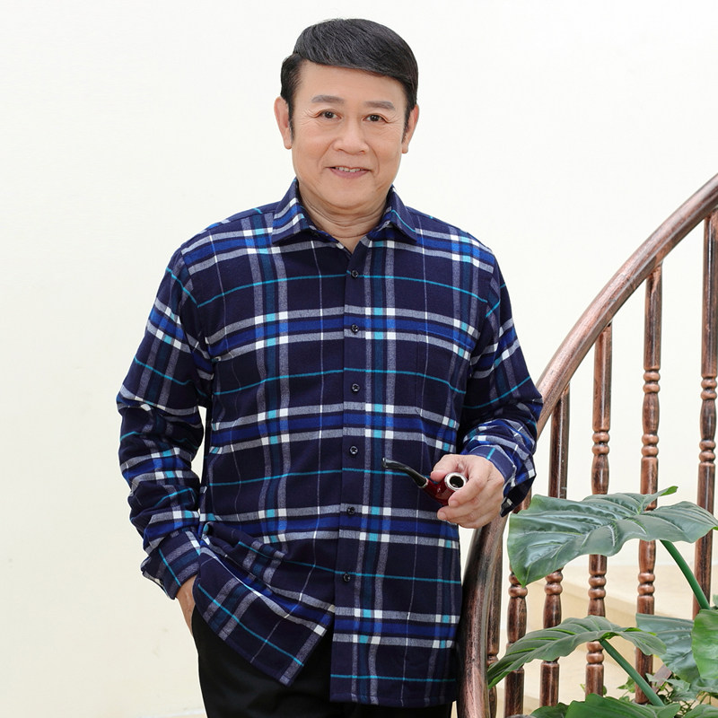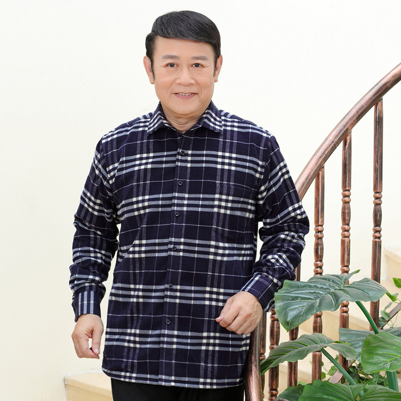 Winter middle aged men's warm shirts Men's gush shirts Father Thickened Long-sleeved Shirts Seniors Winter Clothing