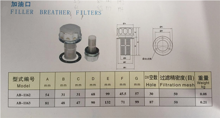 HOTO filter AB-1162 AB-1163 fuel tank filler Port filter filter element