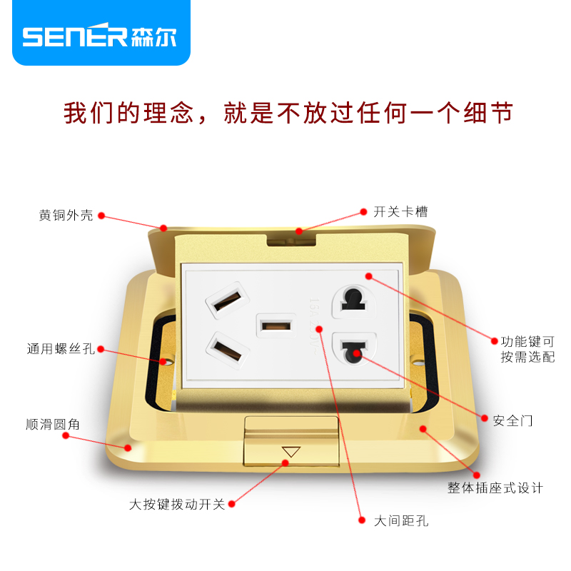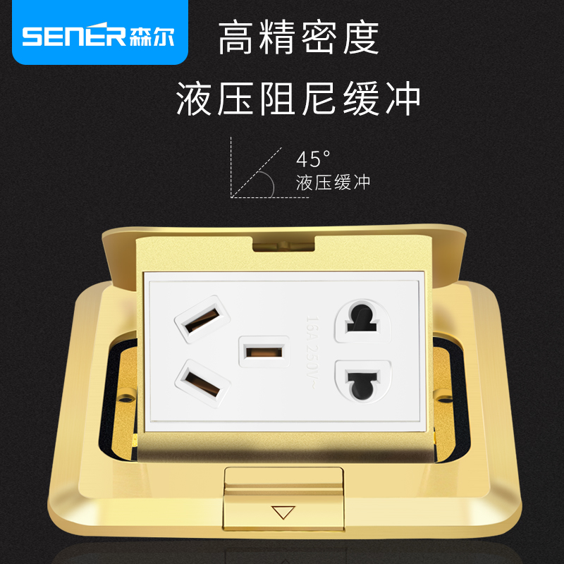 Sener ground socket All copper anti-absorbent bullet lifting damping 16A five-hole ground floor plug household engineering high power