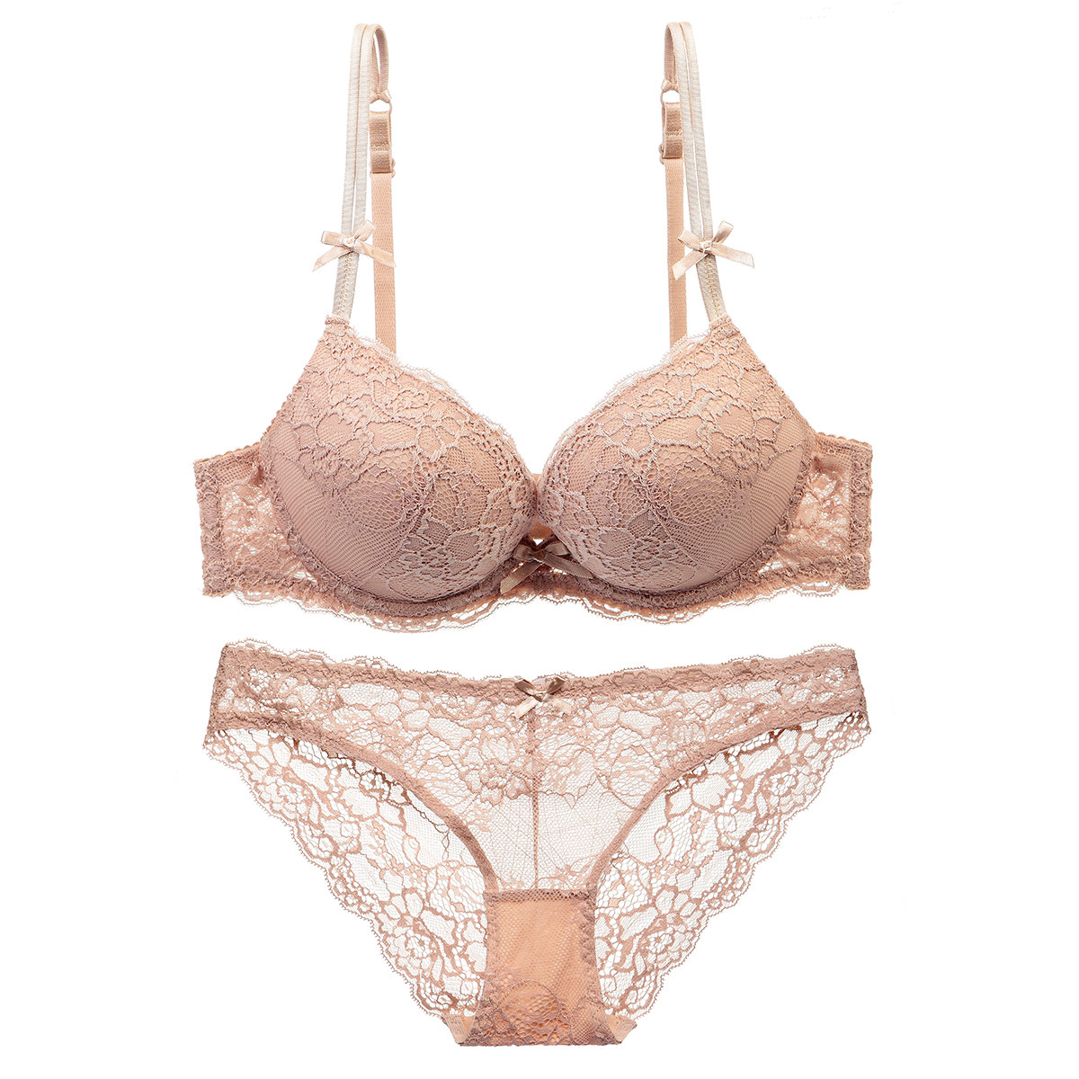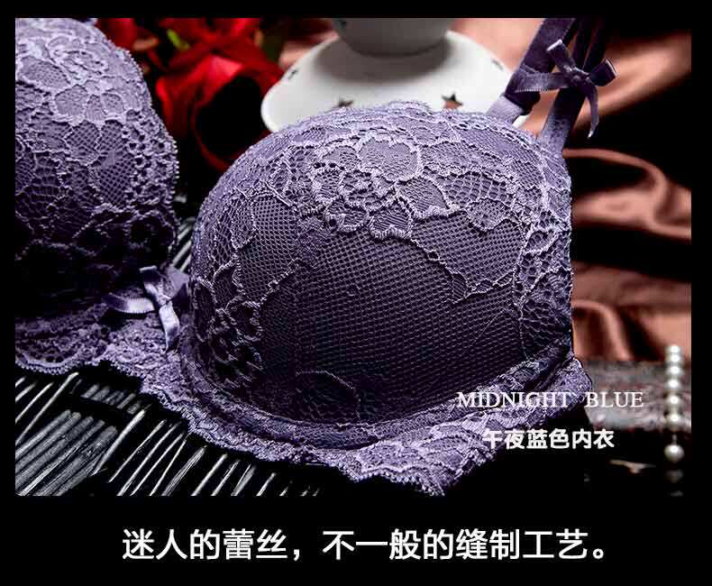 European and American sexy underwear French lace embroidery girl simple gathering bra underwear thin and thick
