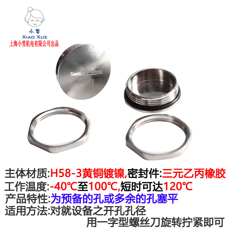 Metal stuffy cover M18*1 5 round plug brass nickel-plated spiral blocking plug one-word groove round threaded plug