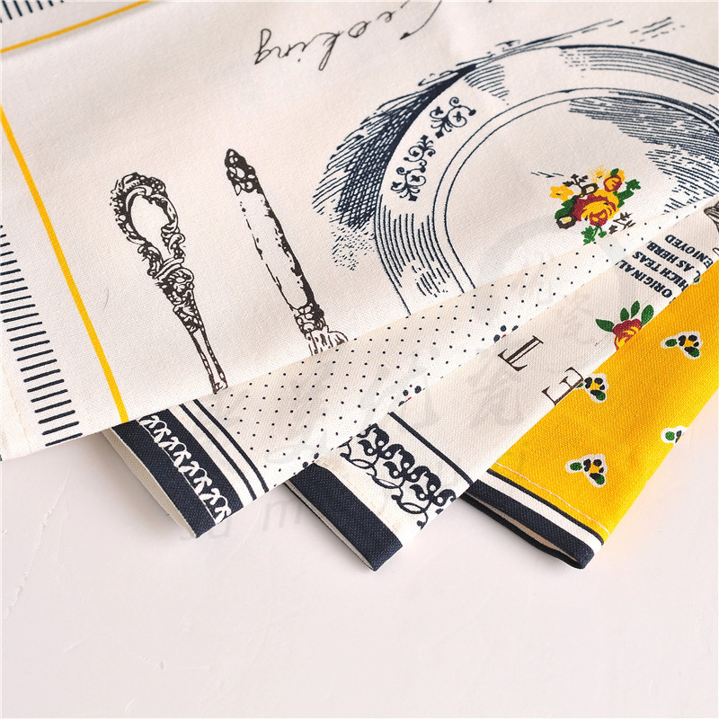 Tablecloth yellow bottom floral 30*32 tablecloth white background floral 30*32 tablecloth plate knife fork 30*32 tablecloth English kettle 30*32