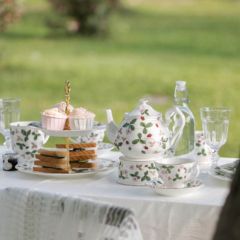 New version of the Mark cup 10 5-inch large plate sugar can 8-inch dessert plate double-layer snack skewer plate Milk cup Coffee cup plate 1 Teapot 2 cup plate 1 pot 4 cup plate double-layer plate 1 teapot 1 sugar can 1 milk cup 6 cups