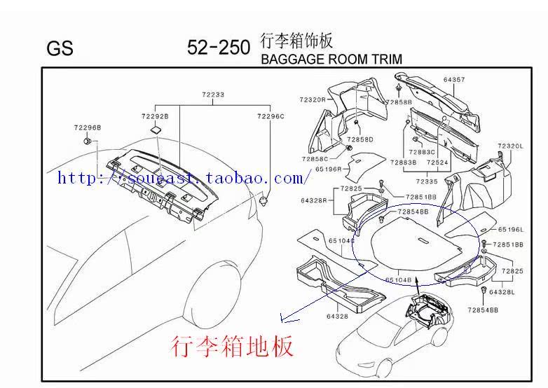 () Mitsubishi Yishen old model, rear trunk floor, floor on the carpet inside the rear hood 7646A144