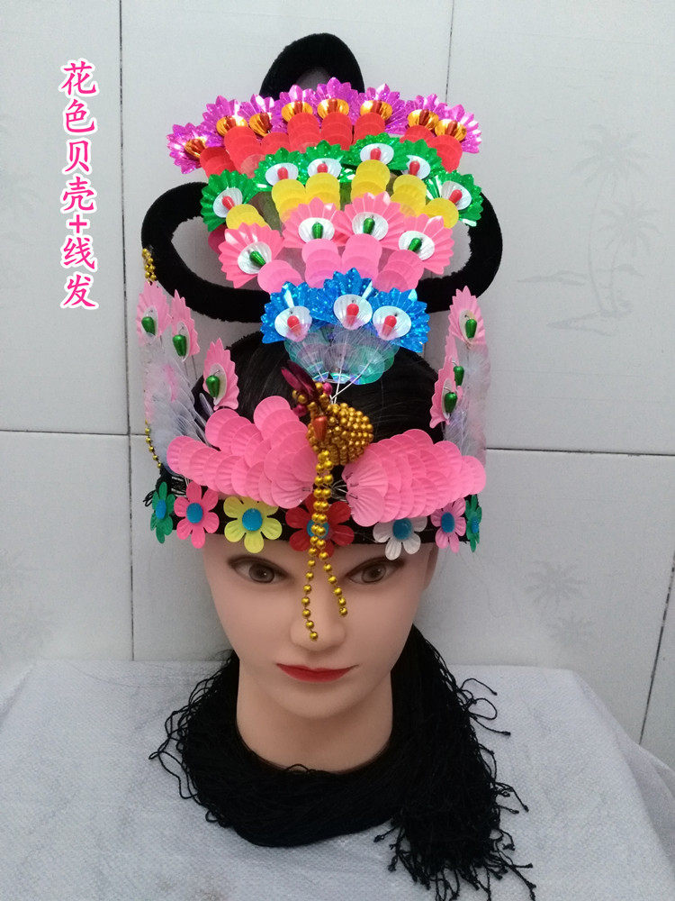 Pink beads (with braid) rose red beads (with braid) green beads (with braid) down polyester head decoration gold thread headwear silver thread headwear A colored bright sheet (with braid) Colorful shell line hair flowers