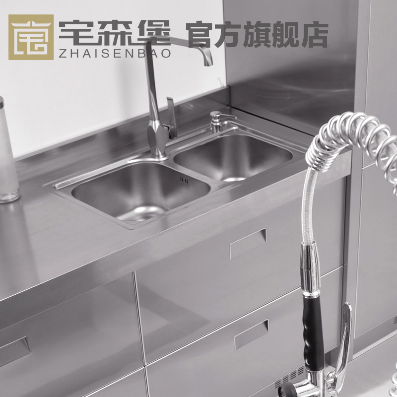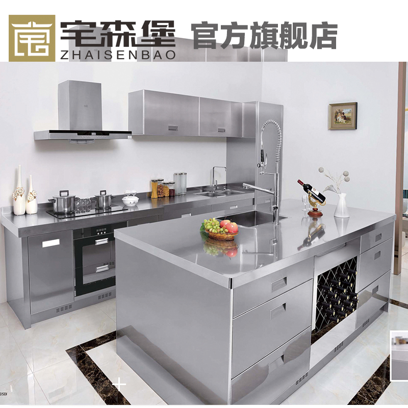 Shenzhen overall set to make modern 304 stainless steel integral cabinet Hong Kong custom double layer single layer stainless steel minimalist kitchen