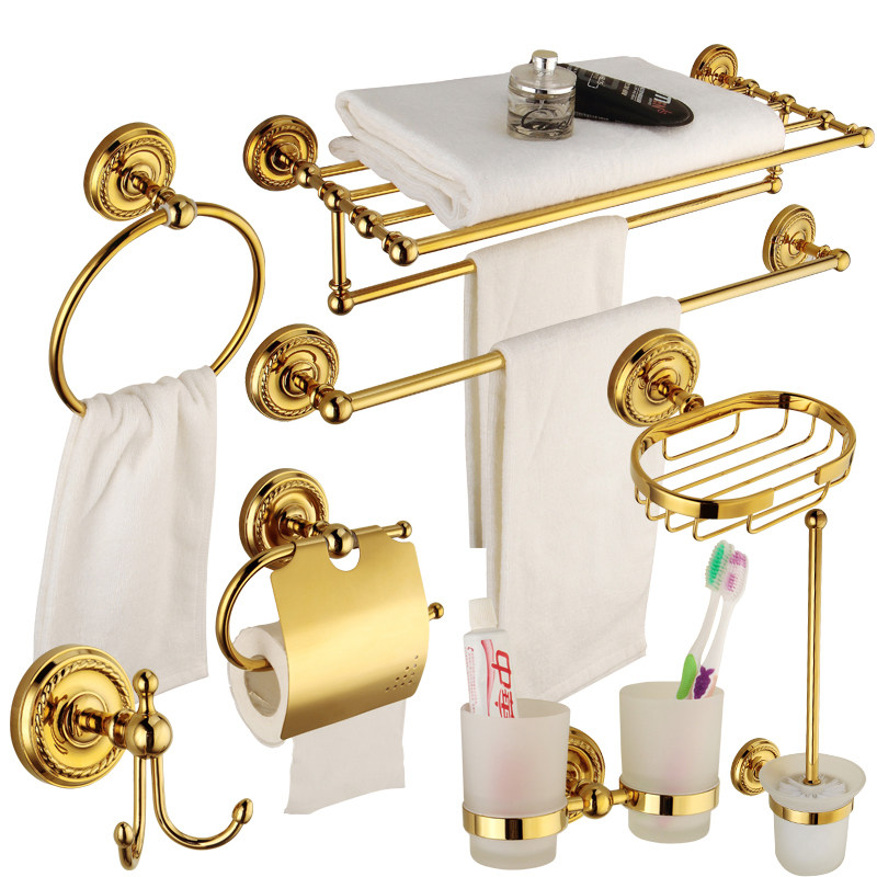 Gold Double-rod Gold Single-rod Gold Bath Towel Holder Gold Towel Ring Gold Paper Towel Holder Gold Soap Net Gold Double Cup Gold Toilet Brush Gold Coat Hook Gold Triangle Double Shelf