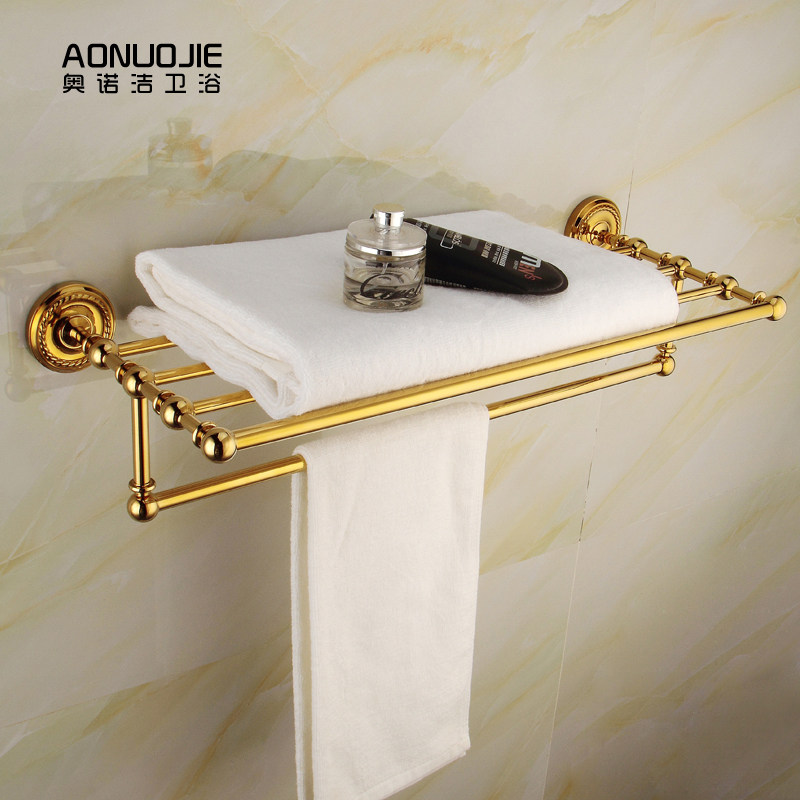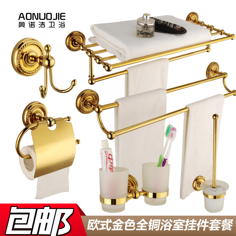 No punching full copper gold bath towel rack Bathroom towel rack hardware set Rack powder room wall hanging