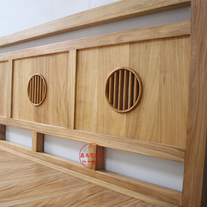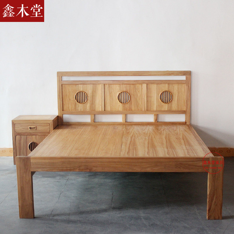 Old elm wood double bed modern minimalist double man bed New Chinese tenon and solid wood double bed 1 8 bed Zen free of paint-Taobao