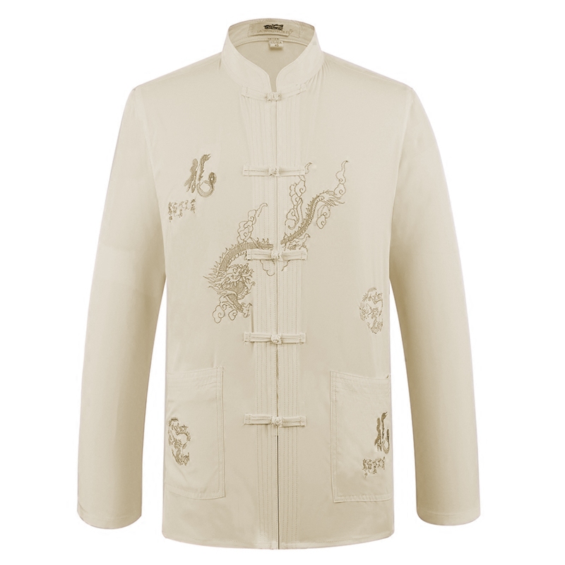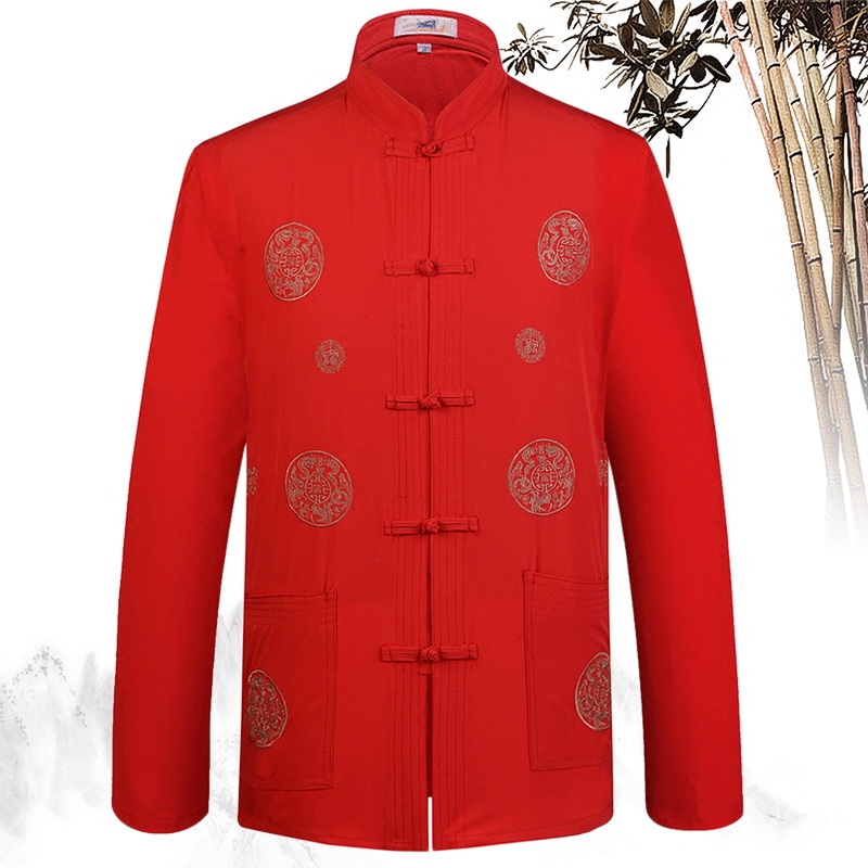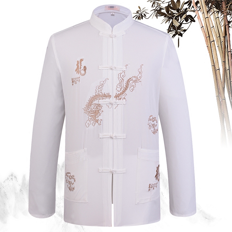 New middle-aged men's Tang long-sleeved shirt Chinese plate buckle top mulberry silk dad outfit old man clothes