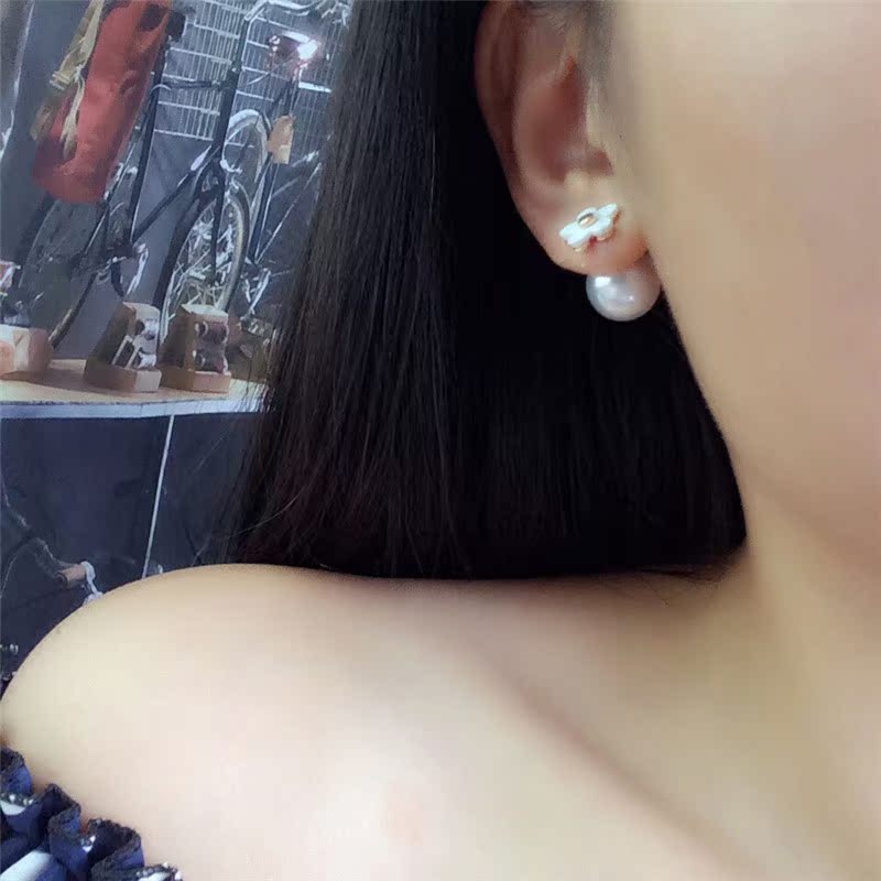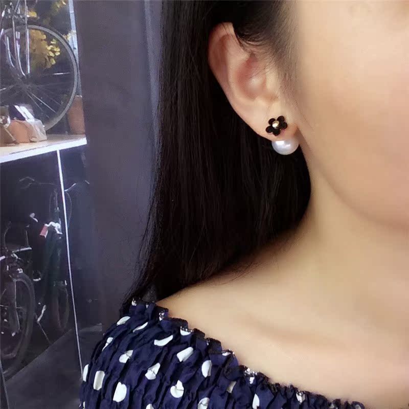 European and American Korea Fashion temperament ear ornaments Korean version of flowers before and after small flower pearl earbuds pop earrings