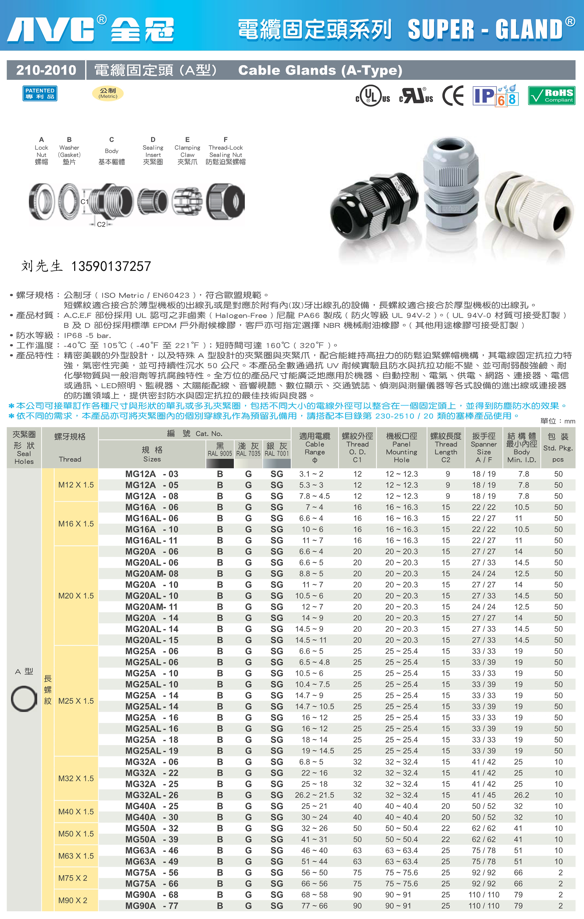 MG75A-66B Taiwan full crown original cable fixed head waterproof connector Grant head M75X2