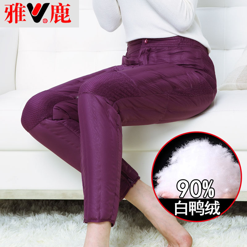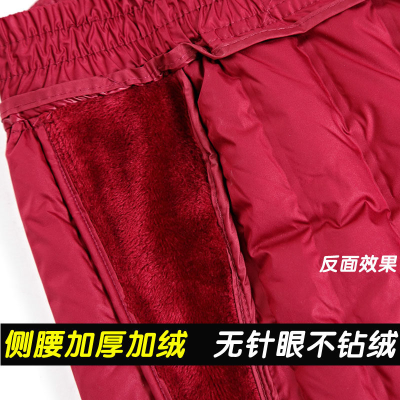 Yose mid aged down pants woman high waist thickened inside wearing elderly mother liner cotton pants white duck suede large size for winter