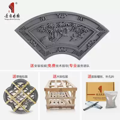 Tang language fan-shaped bamboo brick window ancient building blue brick old brick carving Antique relief painting Chinese shadow Wall Wall decorative building materials