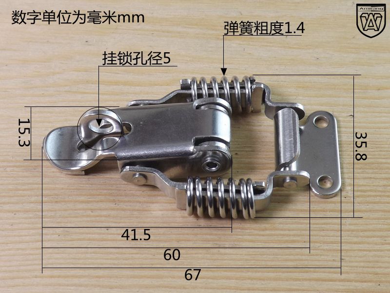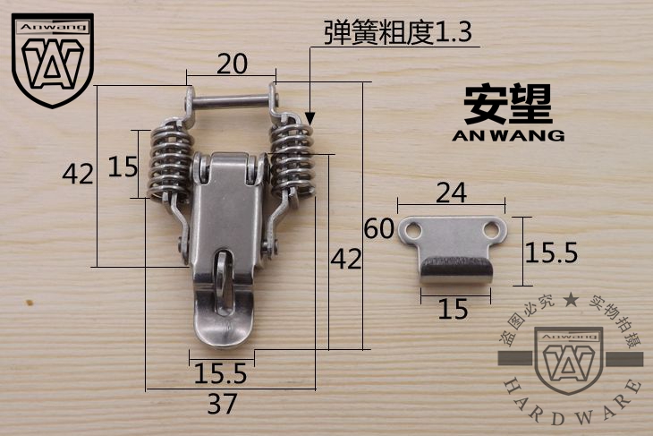 304 stainless steel double spring with lock buckle wooden case hanging lock catch box Mainframe Shell Buckle Bag Accessories 068