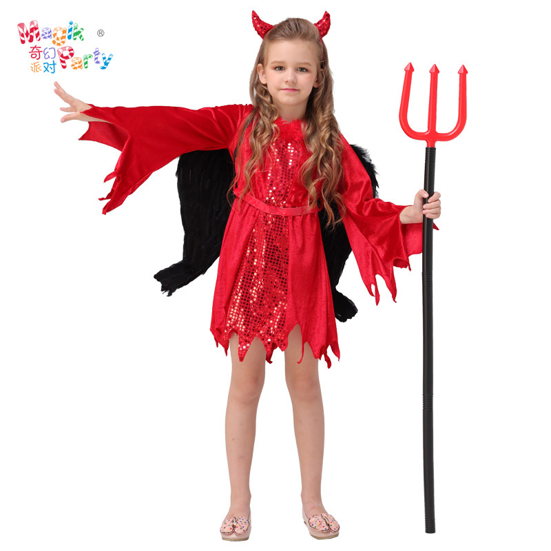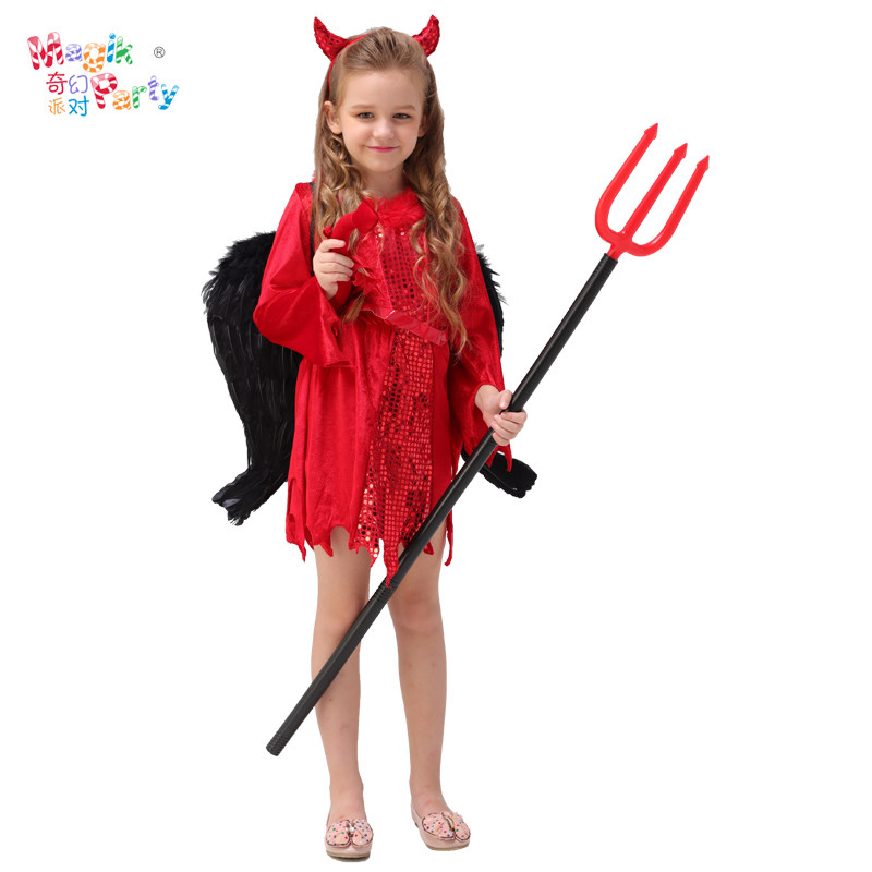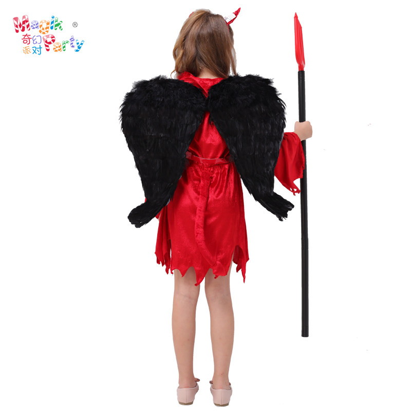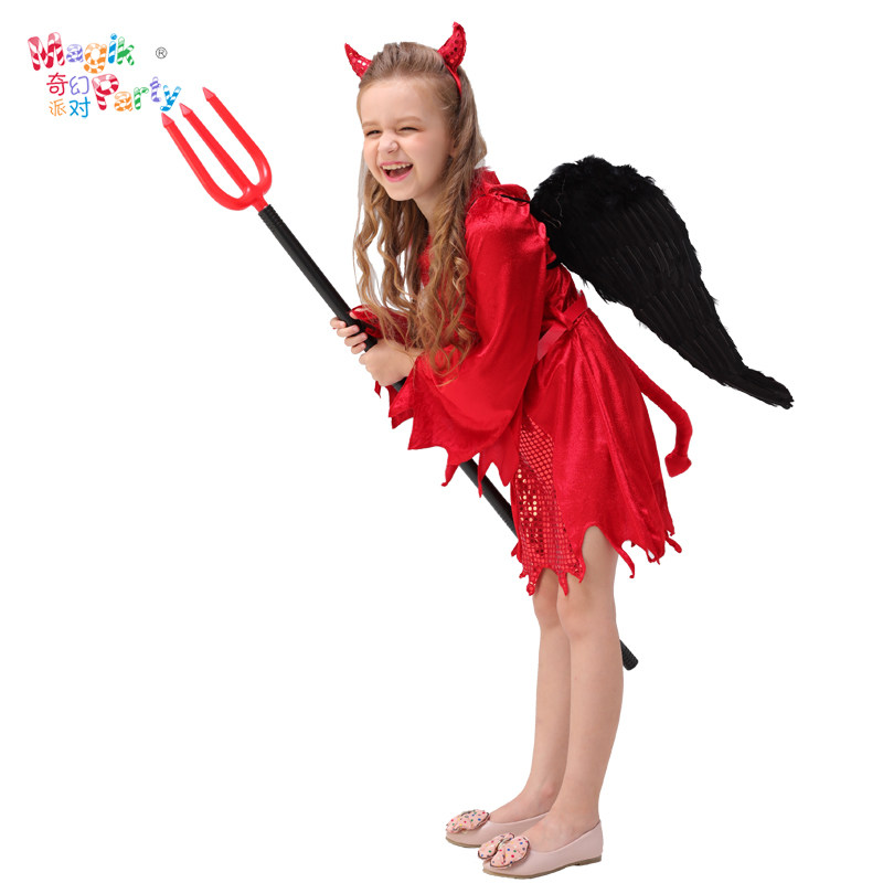Halloween children's performance costumes Cosplay show clothes girl terror horn demon red devil dress