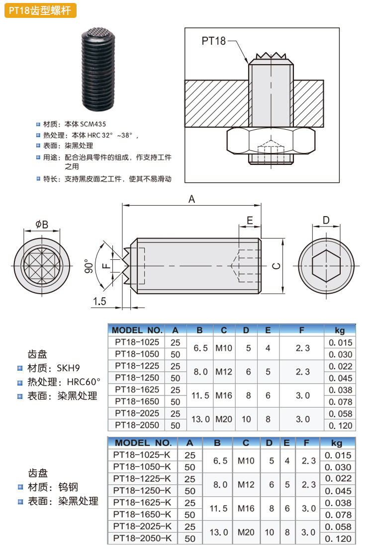 Taiwan's Yu Wei PT18-1025 toothed fixed screw PT18-1050 1225 1250 1250 1625 1650