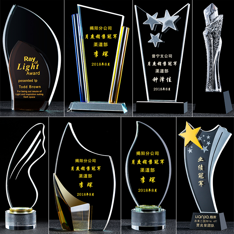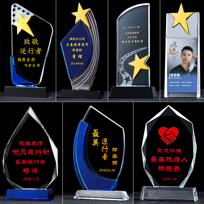 Yuxin crystal trophy custom five-pointed star thumb trophy custom competition medal creative lettering production