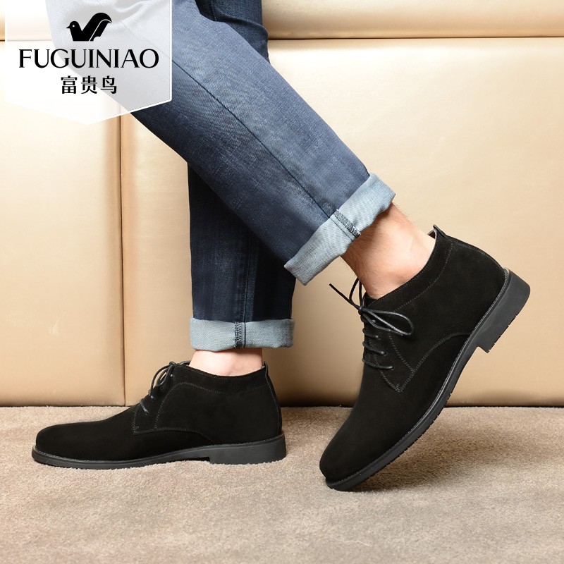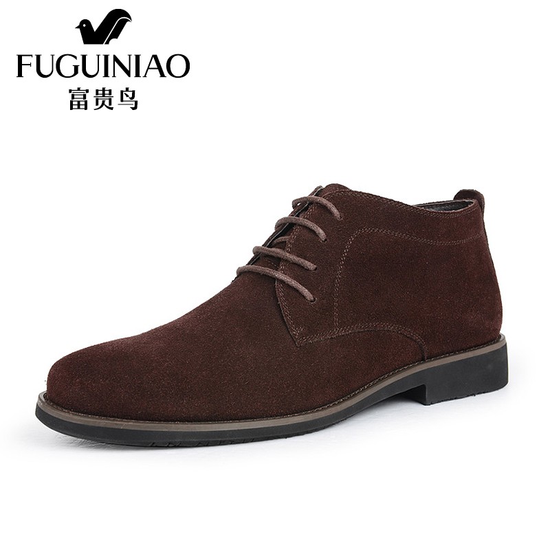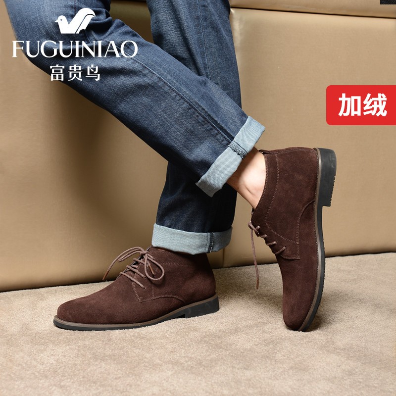 Fugui Bird Men's Short Boots Genuine Leather Winter Inlenwind Desert Boots Martin boots Men's boots Casual Gush Cotton Shoes Man