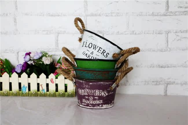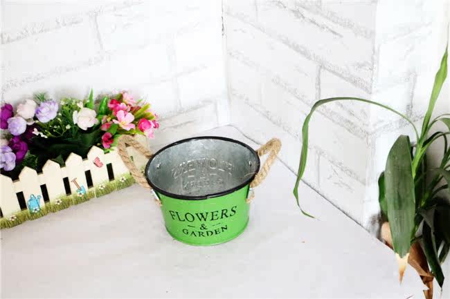 Rust-proof retro tin flowerpot wrought iron flower utensils American country nostalgic retro creative succulent flowerpot tin bucket