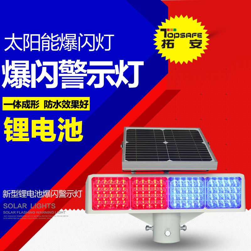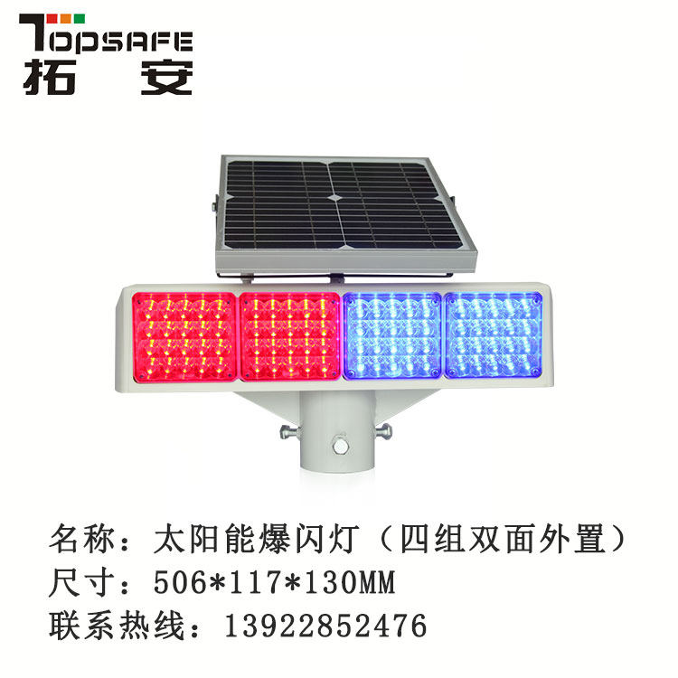 Traffic Signal Light Red Blue Warning Lights Four Groups Of Bifacial External Solar Panels Burst Flashing Lights LED Strobe Lights Custom