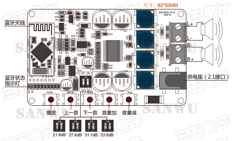 TDA7492P Bluetooth power amplifier board Bluetooth audio receiving power amplifier Bluetooth CSR4 0 digital power amplifier board