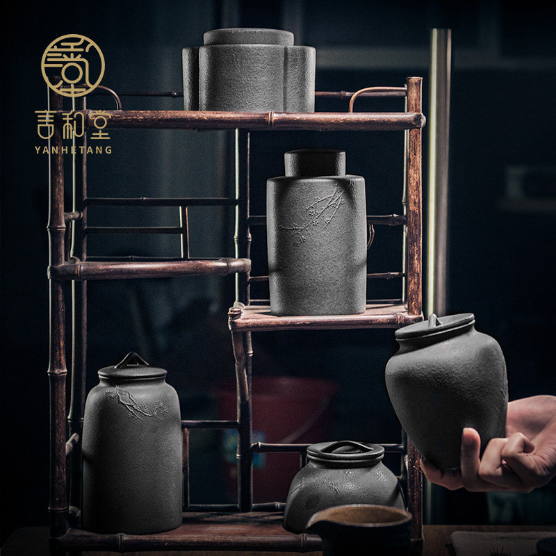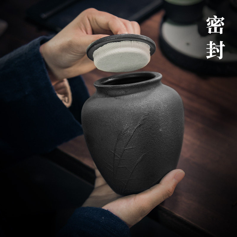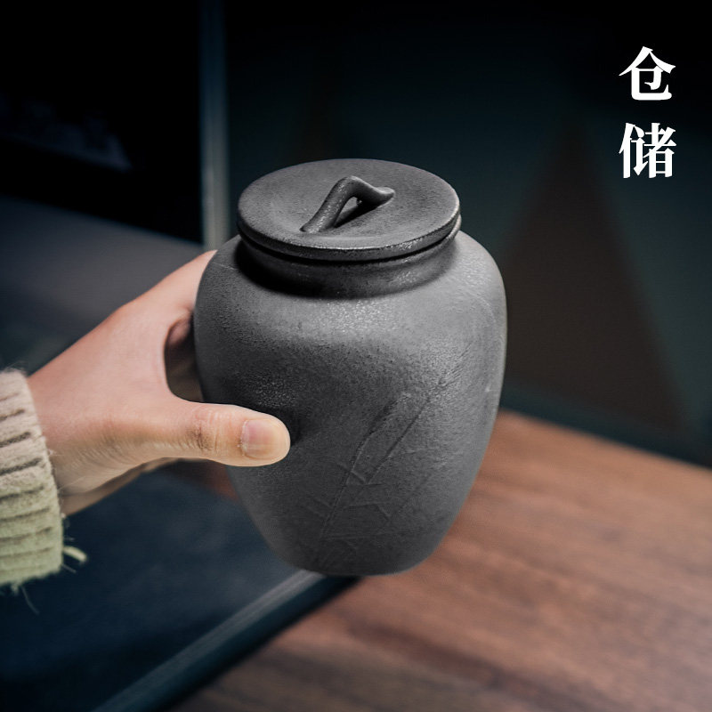 Coarse pottery tea cans ceramic sealed cans large tea cans black pottery cans tea pots Pu'er pottery pots tea pots