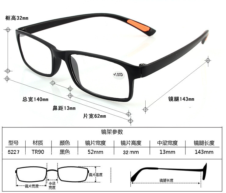 TR90 reading glasses for men and women light fashion portable anti-fatigue hyperopia reading glasses comfortable high-definition resin elderly mirror