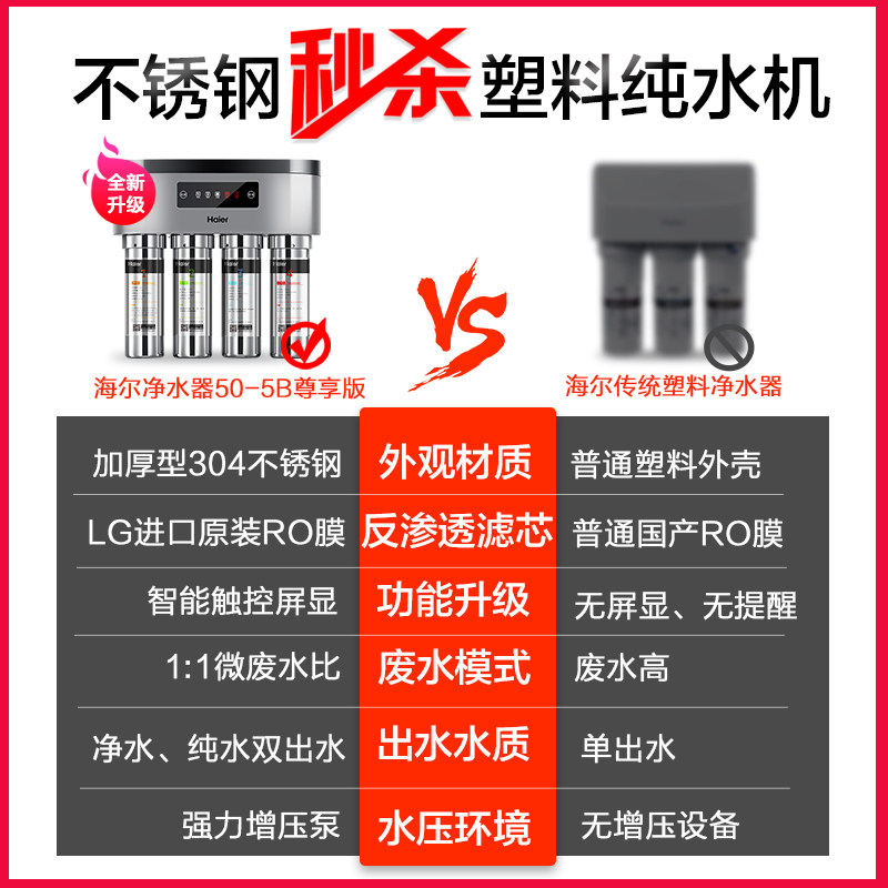 Haier Water Purifier Home Straight Drinking Water Filter Ro Reverse Osmosis Purified Water Machine Stainless Steel Wash Millet Grain