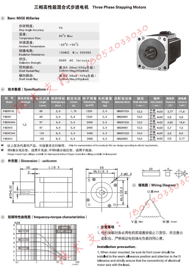 Hangzhou Mig Stepper motor Three-phase hybrid stepper motor FHB3913 FHB3913-H 85-6 Nm