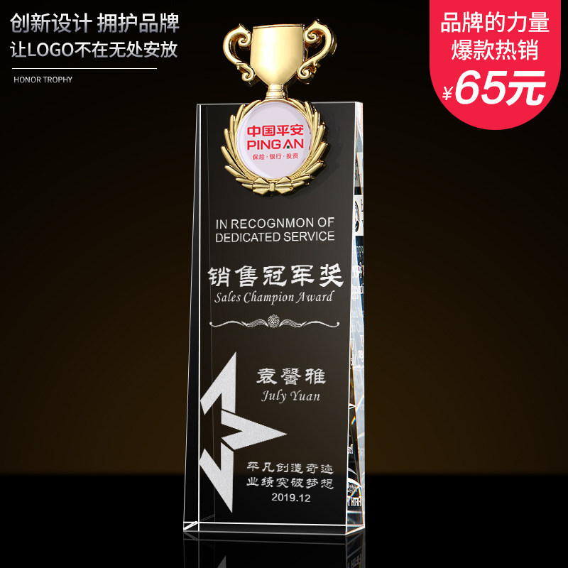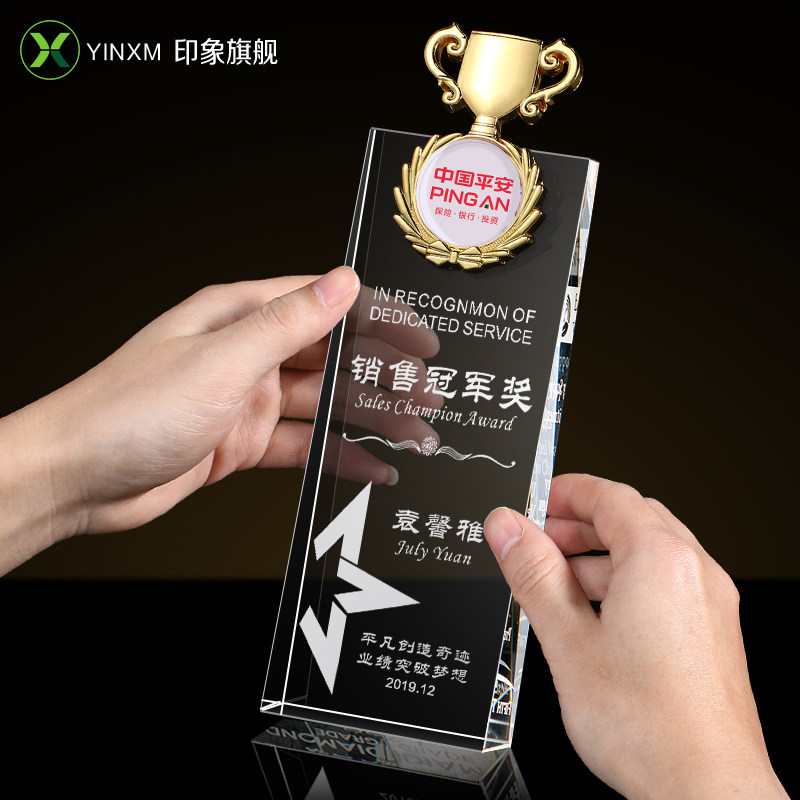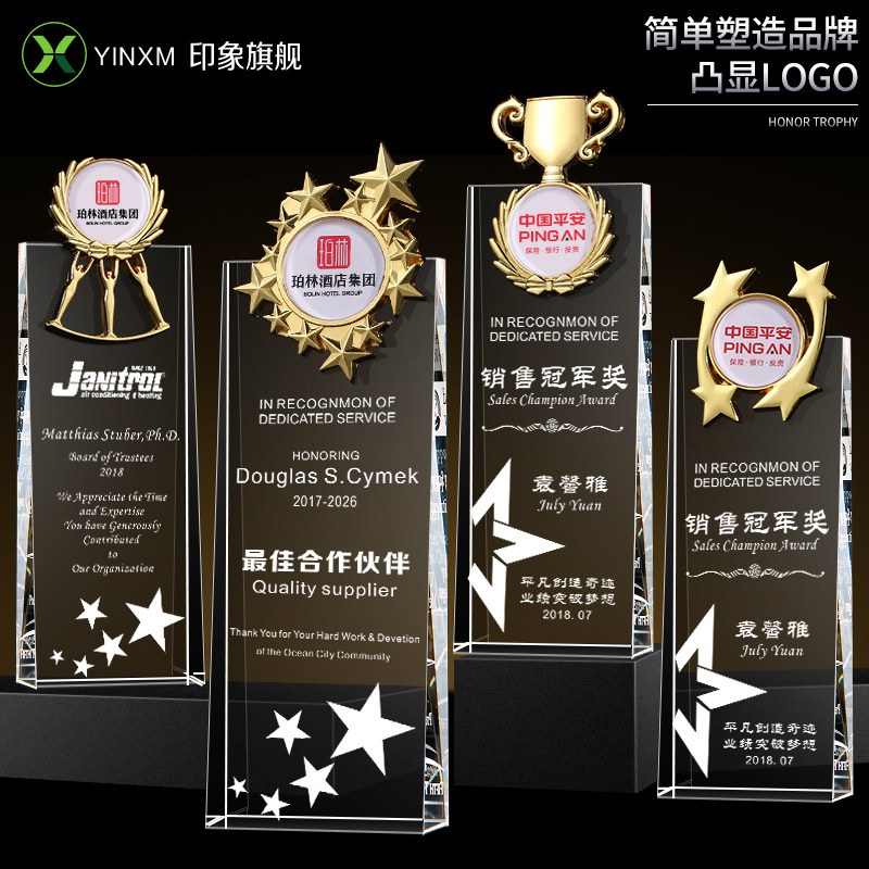 Crystal glass trophy custom five-pointed star trophy custom-made sales champion excellent employee trophy lettering