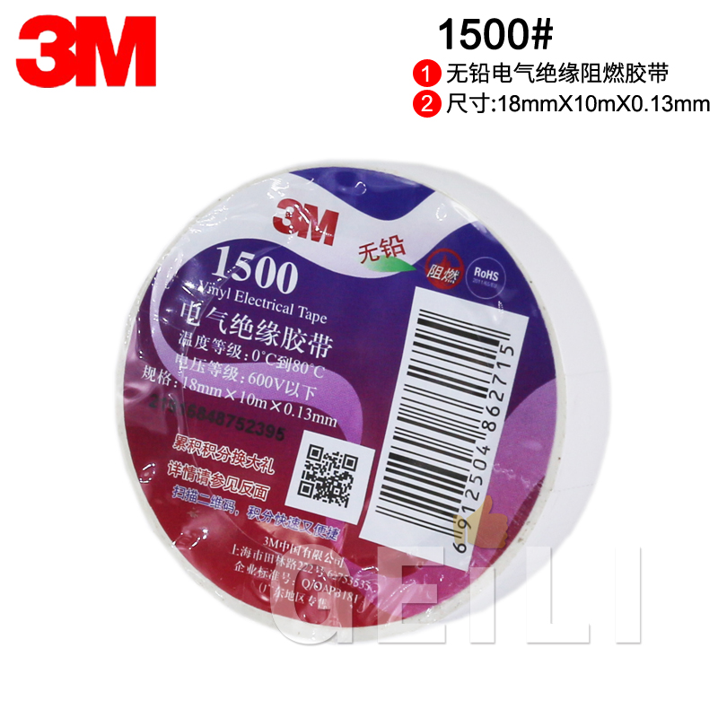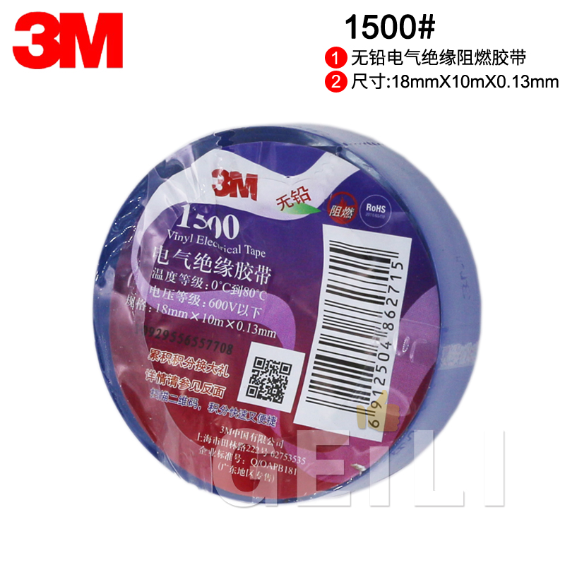3M electrician adhesive tape 1500 lead-free electrical insulation flame retardant rubberized fabric PVC adhesive tape 10 m black red