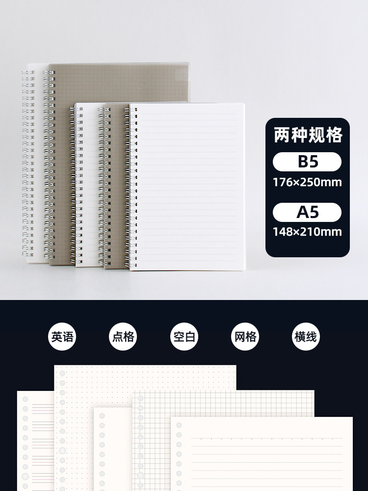 Suiron times b5 notebooks Upper Turn Thickened Notebook University College Students Transparent Frosted PP Spiral Coil Inscriptions this a5 coil This pane crossline English Blank Plaid grid Ben