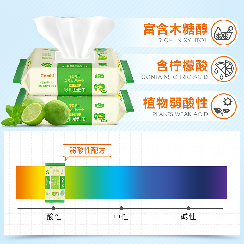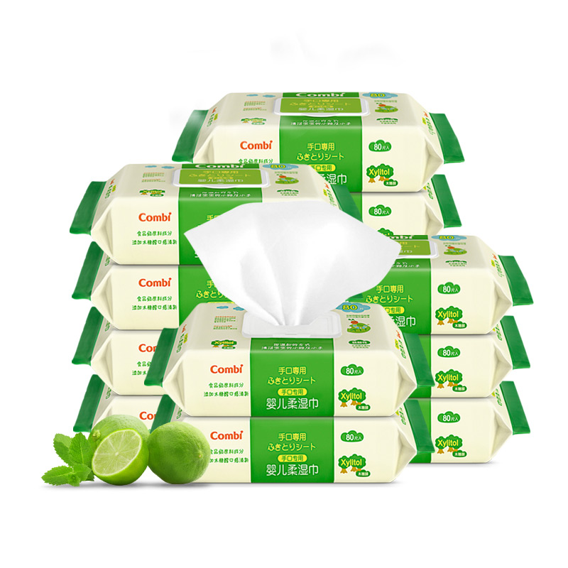 Combi baby wipes Hand and mouth special baby baby wipes 80 suction with cover*12 packs