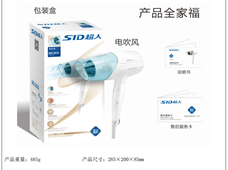 Superman SF1631 foldable hair dryer 1600W high power household three-speed heating and cooling air constant temperature