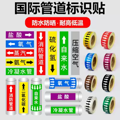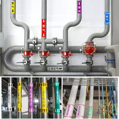 Pipe logo OEM sticker national standard reflective film Fire chemical flow direction arrow indicator patch color ring pipeline label sticker compressed air steam spray oxygen sticker warning sign