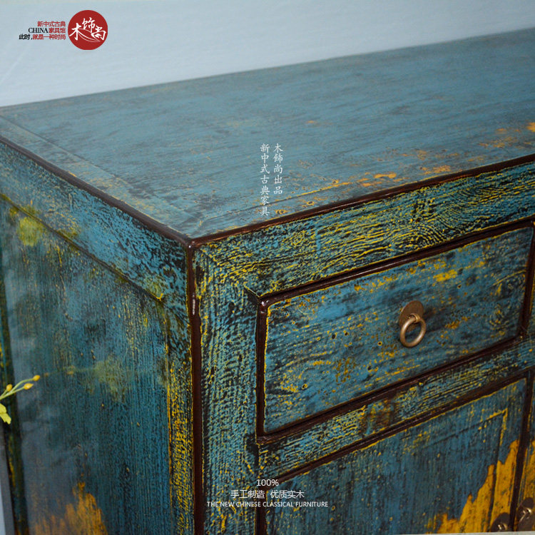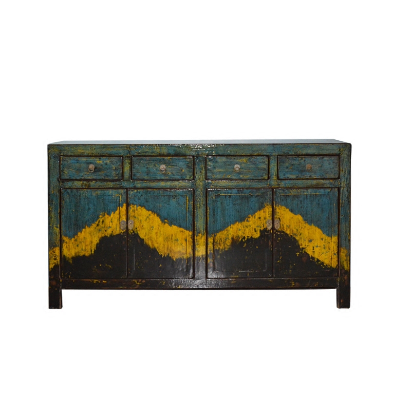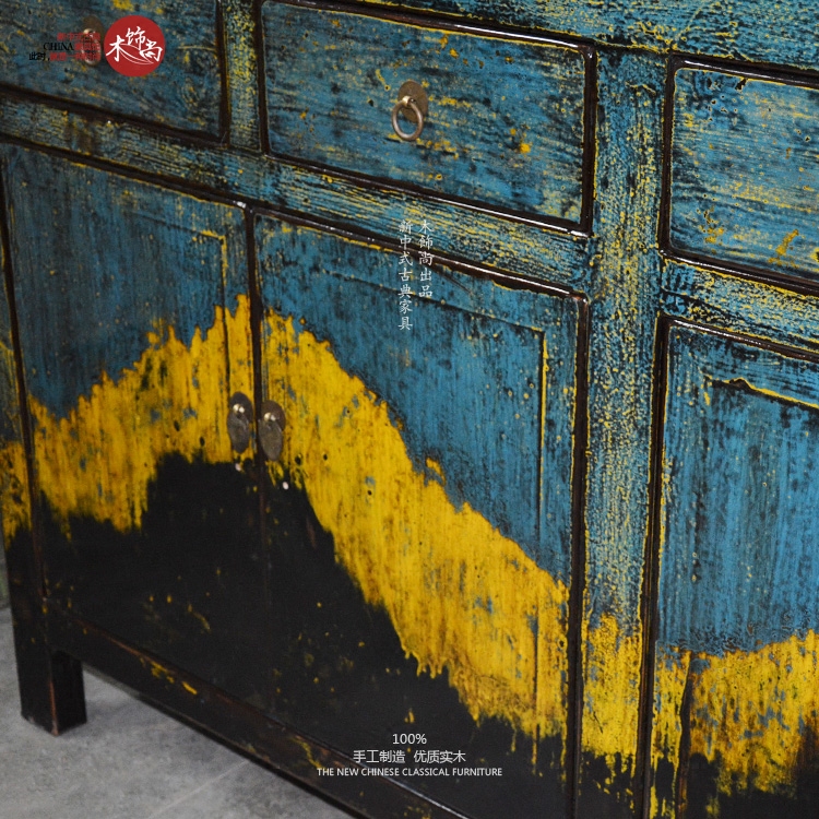 Environmentally friendly bright lacquer color lacquer craftsmanship 4 drawers 4 doors dining cabinets Mediterranean New Chinese blend for old solid wood edge Xuan closing cabinet