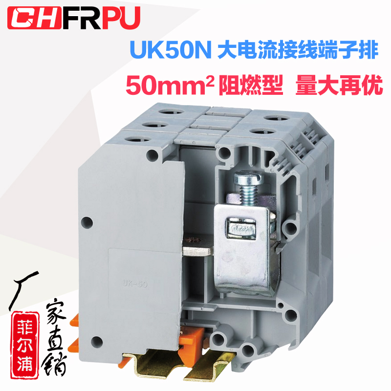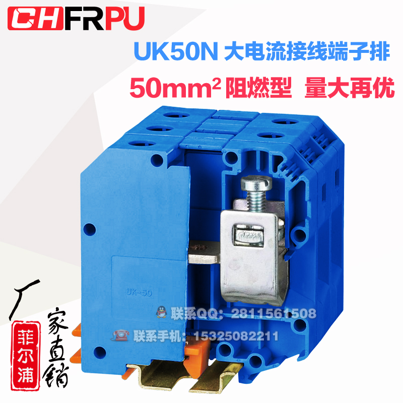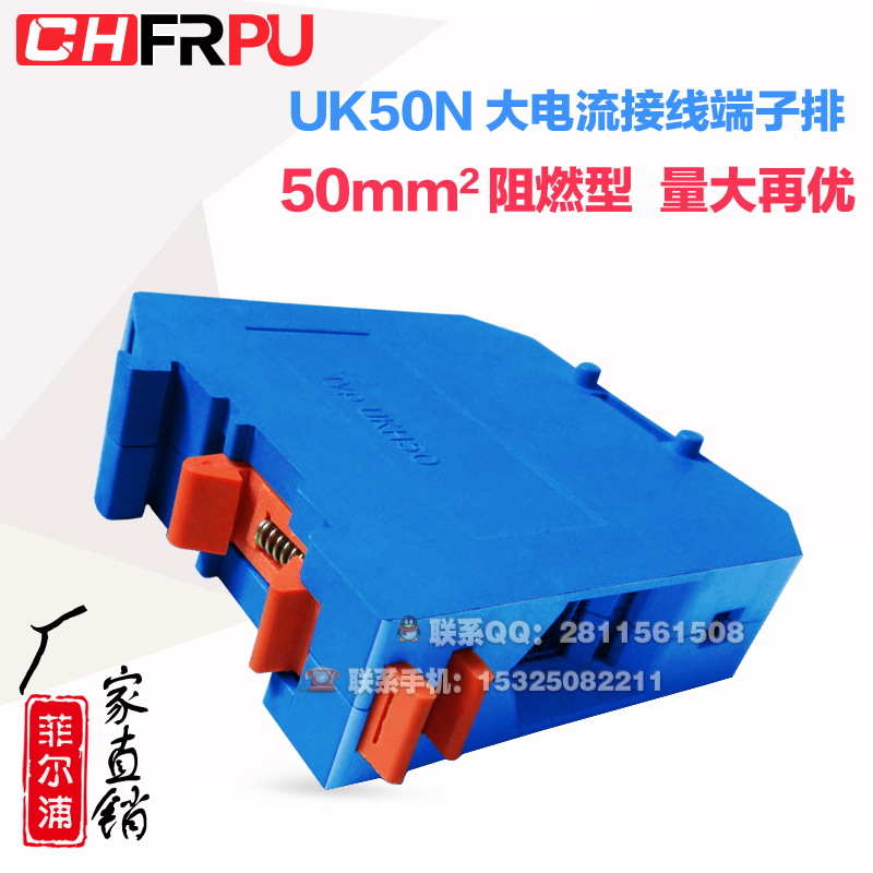 Manufacturer direct rail type large current UK50N universal wiring end subtable UK-50N 50MM square blue