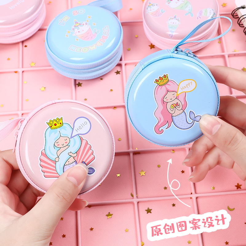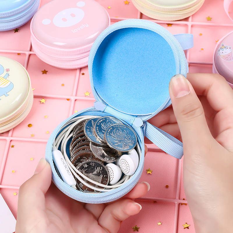 Cute mini coin purse female coin cartoon earphone bag Portable small gift round simple storage box