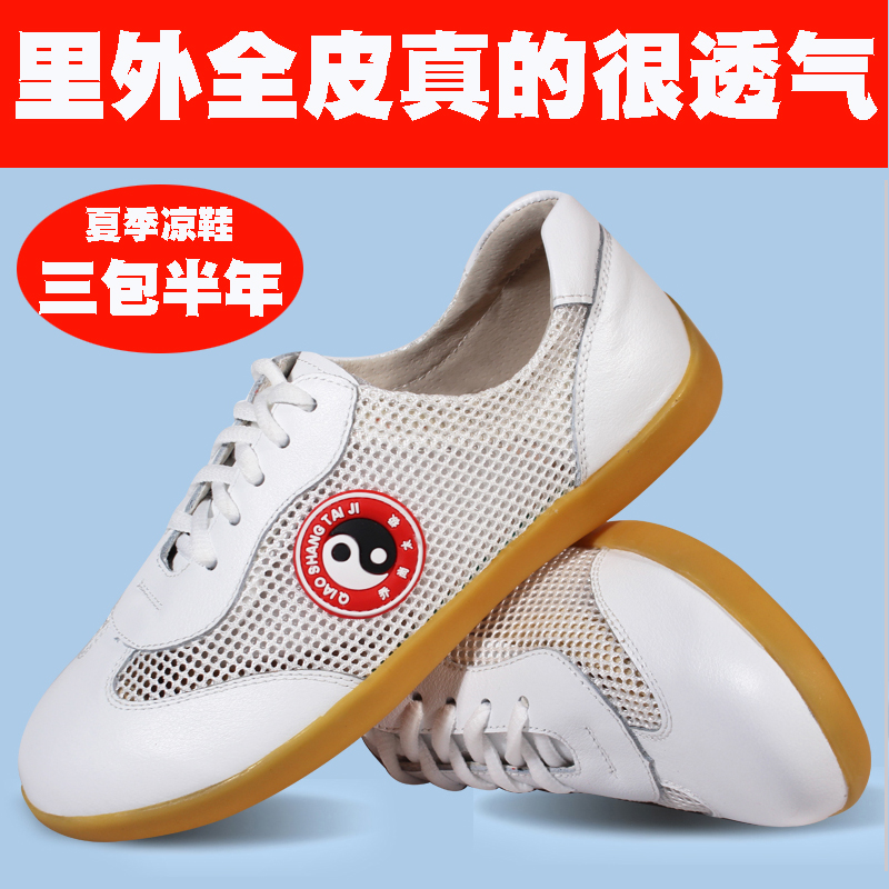 Joshan Tai Chi Shoes Women's Summer Sandals Men Martial Arts Shoes Bull Gluten Bottom Genuine Leather Taijiquan Kung Fu Shoes Breathable Without Foot Odor