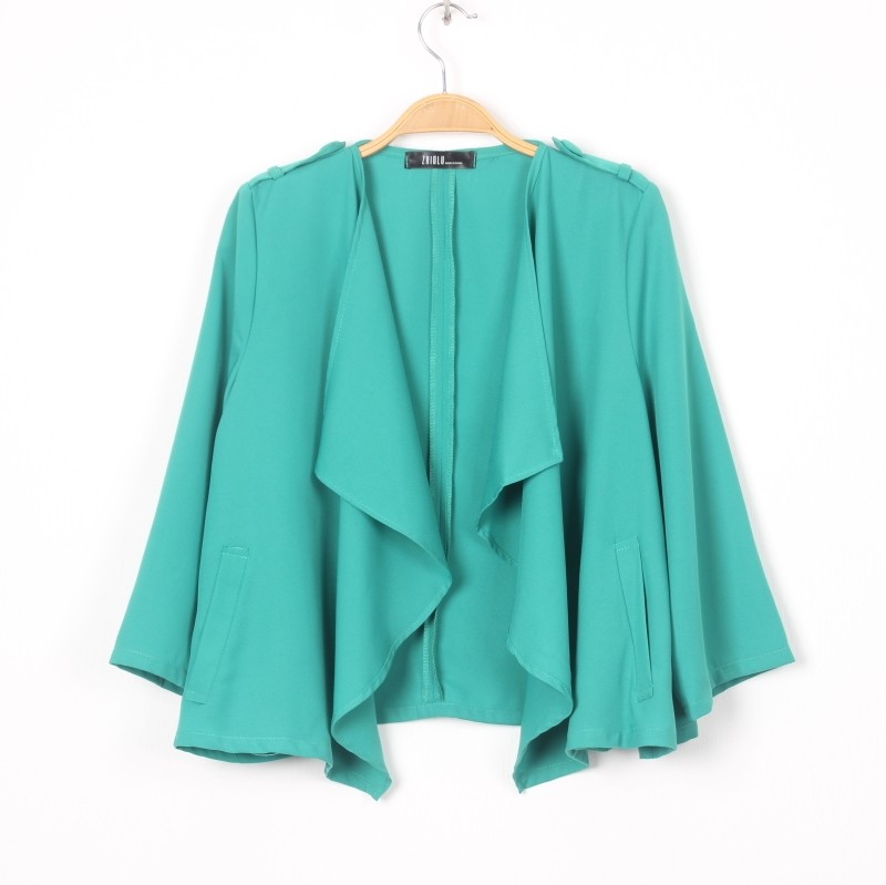 2022 spring new solid color casual large lapel buttonless cardigan jacket women's three-quarter sleeves cool commuter top