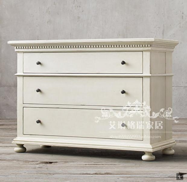 American Country Solid Wood Bucket Locker Cabinet Retro Customized Old White Drawer Cabinet Furniture