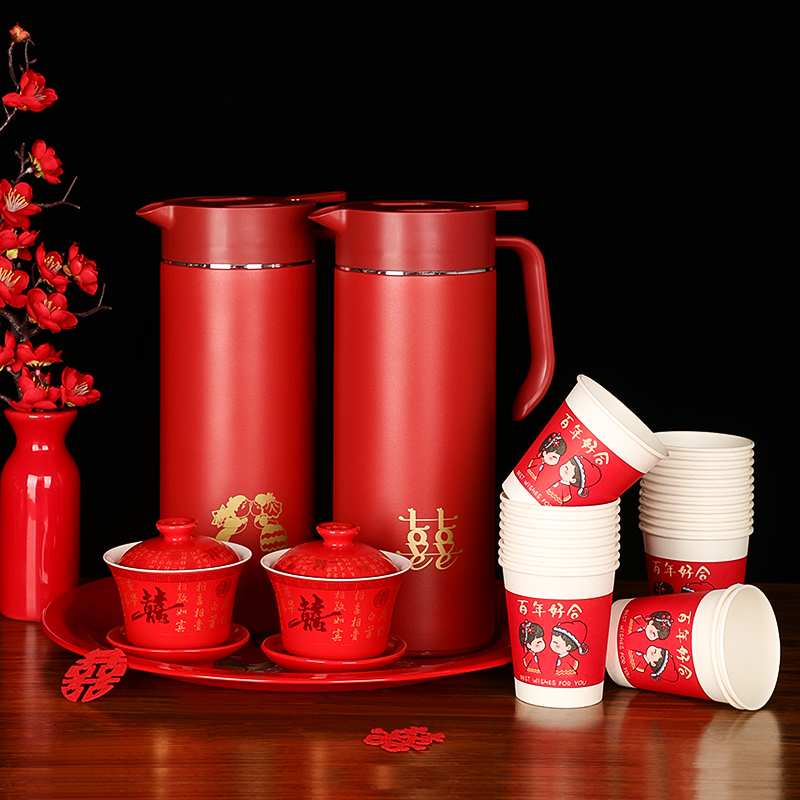 Extra large 2 3L_Double Happy door thermos bottle large 1 9L_happy word thermos bottle large 1 9L_wedding thermos bottle small size 11_Xiesang plus joy_hot water bottle (1 pair) small