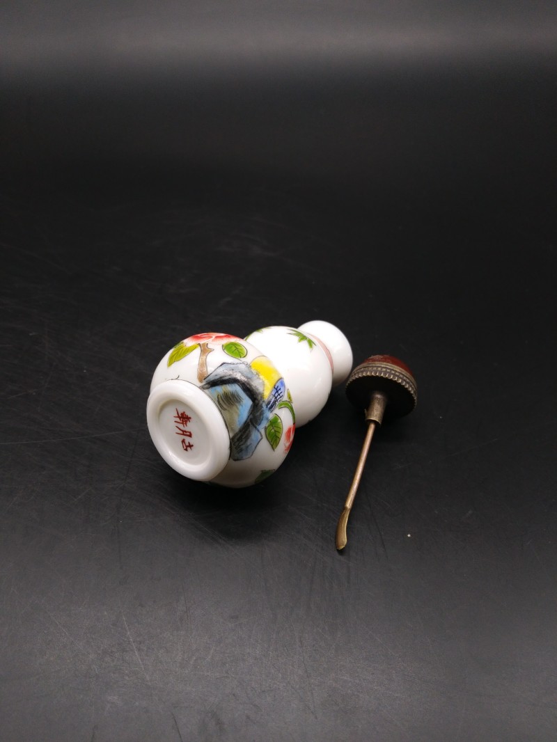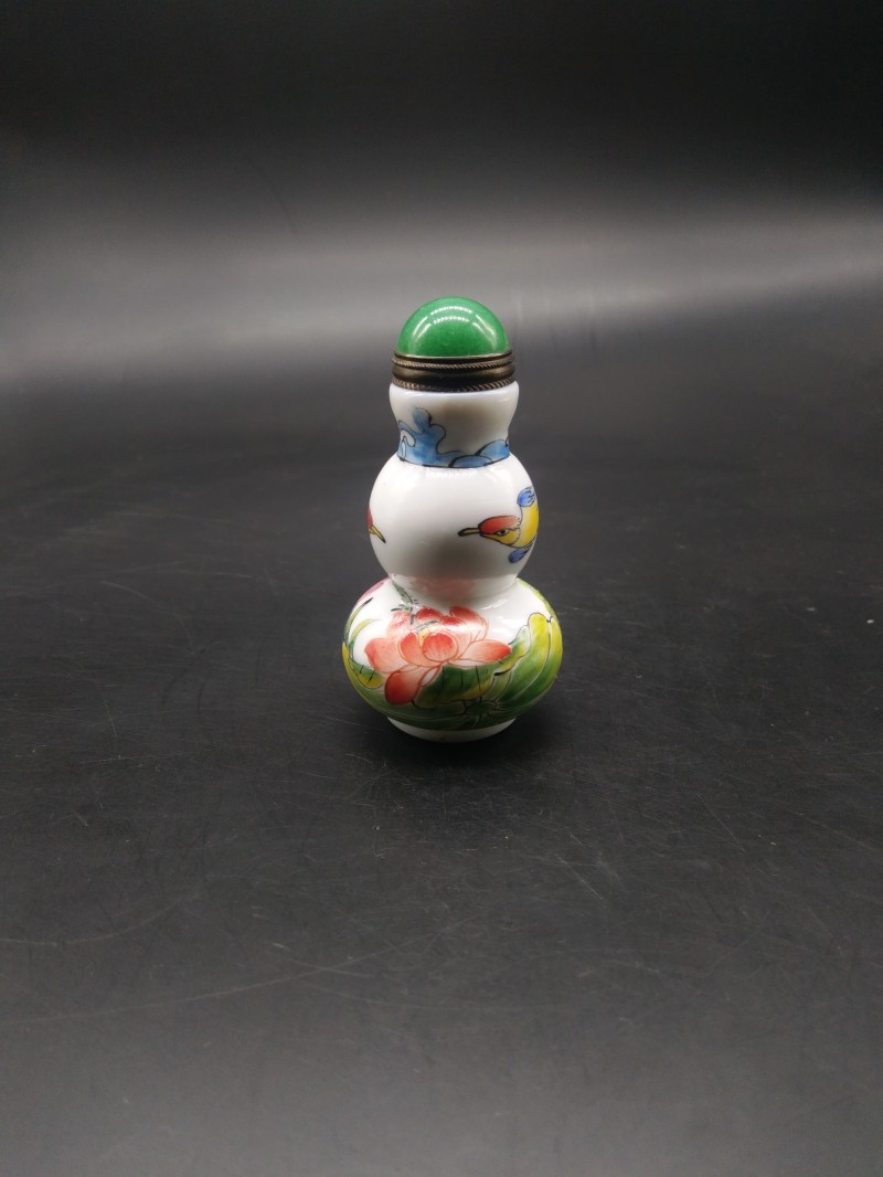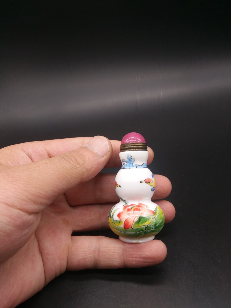 Boantique Shelf Home Swing Accessories Glazed Practical Snuff Pot Gourd Styling Hand Painted Pink Lotus Birds Bamboo Imitation Ancient Play