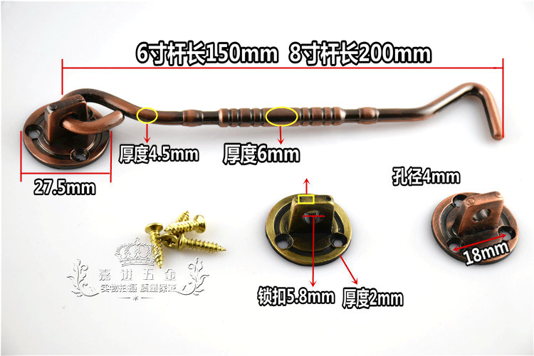 Ancient copper old window window anti - window hook classical door - and - hook button - pull window and door - and - window anti - theft button 6 8 inches