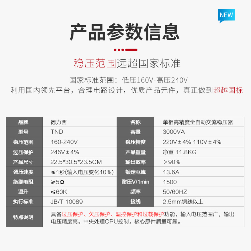 Delixi TND-3KVA 3000W 3K high precision fully automatic AC single-phase household voltage stabilizer