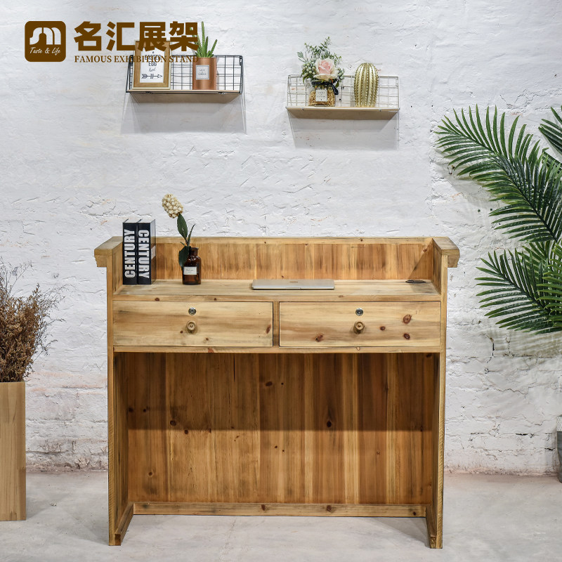 loft display desk clothing coffee shop cashier counter bar counter American solid wood display cabinet retro old front desk bar
