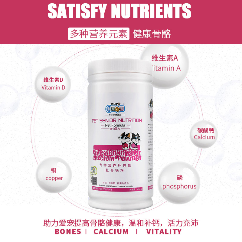 New pet Zhikang pet bone-strengthening calcium powder teddy bear golden retriever Alaskan dog cat nutrition 454g