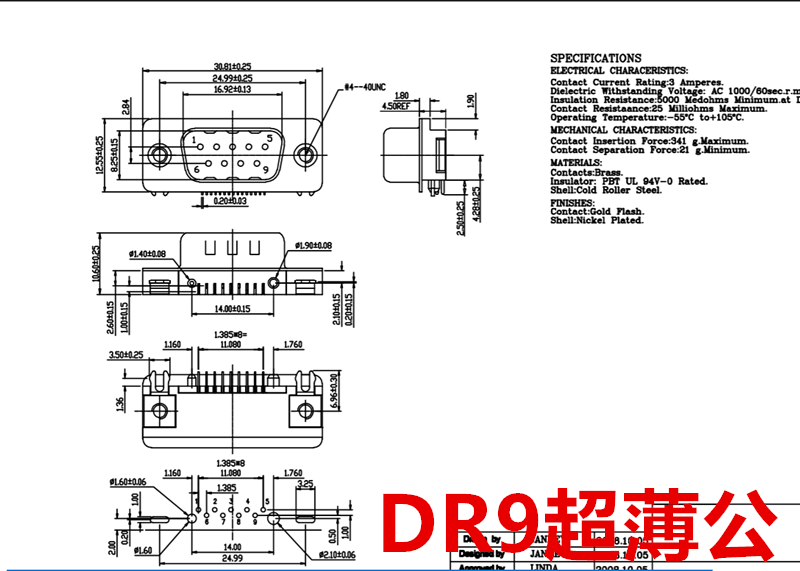 Ultra thin DR9 female head DR9 male DB9 male DB9 DB9 female RS232 serial port welded plate 90 degrees bend