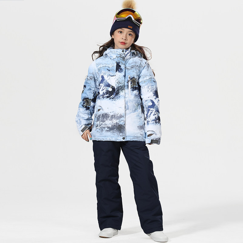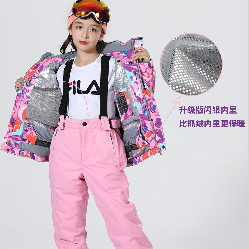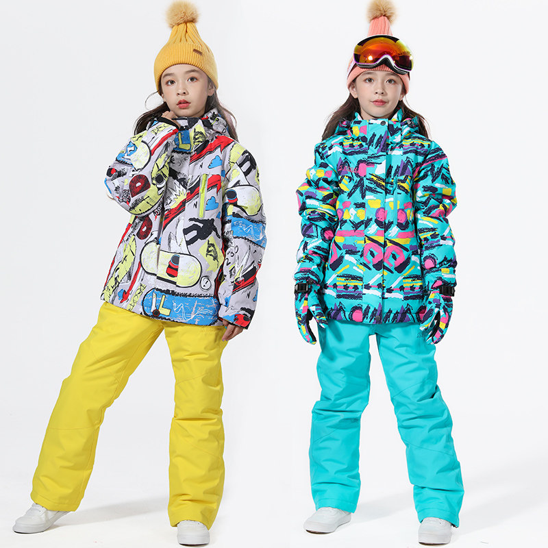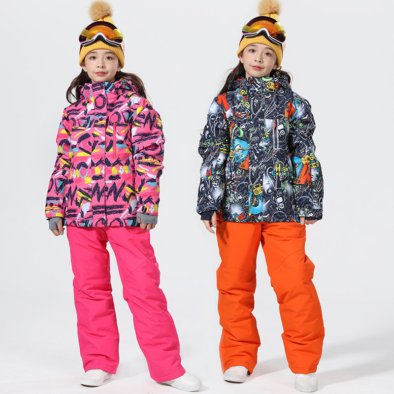 Children's ski suit set Girls and boys outdoor ski clothes waterproof thickened veneer double board baby ski equipment